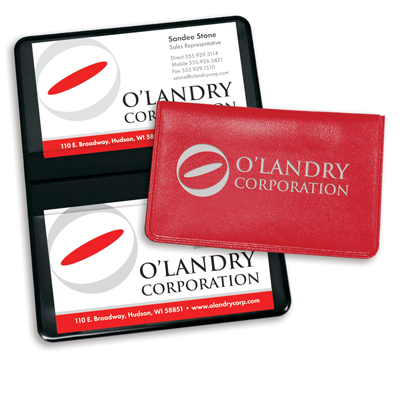 We’re going to discuss two ways to carry your business cards in this blog. The first is this card case. There’s plenty of space up front for branding (this model is a nice hybrid of denim and stainless steel), and what we really like about this branding opportunity is that every time your customer retrieves a card they will be representing not only themselves but your company as well.
